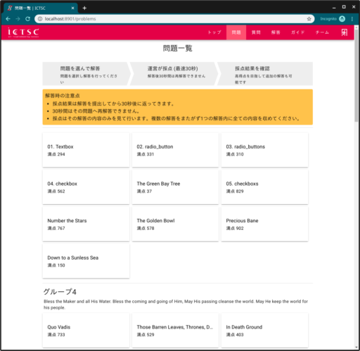 ※競技時間中は本コンテストサイトのスクリーンショットなどをSNSなどにアップロードしないようお願いいたします。