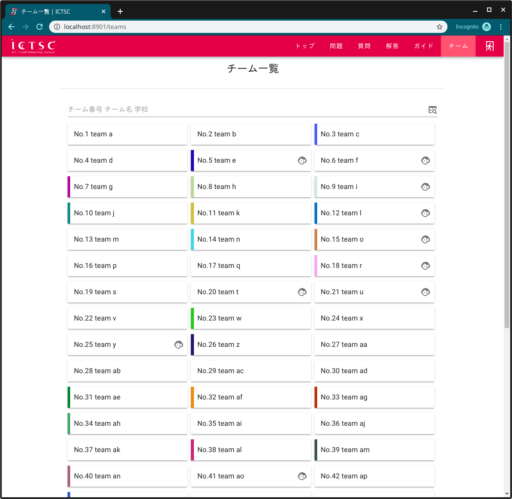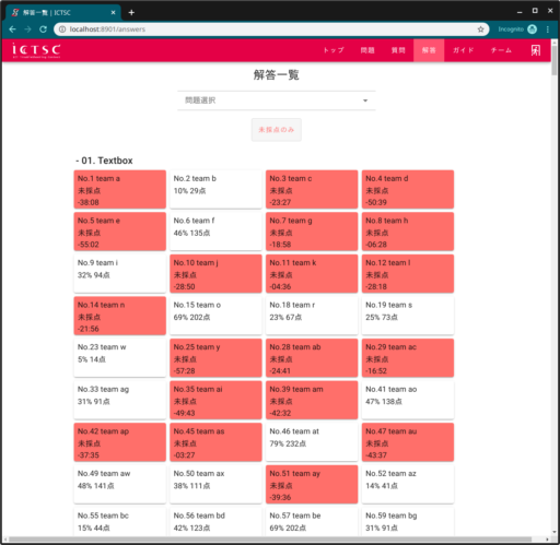 1. 画面上部の「解答」をクリックすると、問題毎の各チームからの解答を見ることが出来ます。