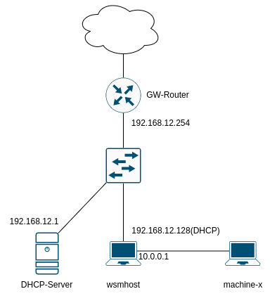 - ホストマシン(wsmhost)の外部へのインターフェイス(eth1)は