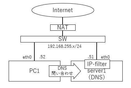 • 上記テストのため、server1はInternetに接続すること。しっかりパケットフィルタすること。
